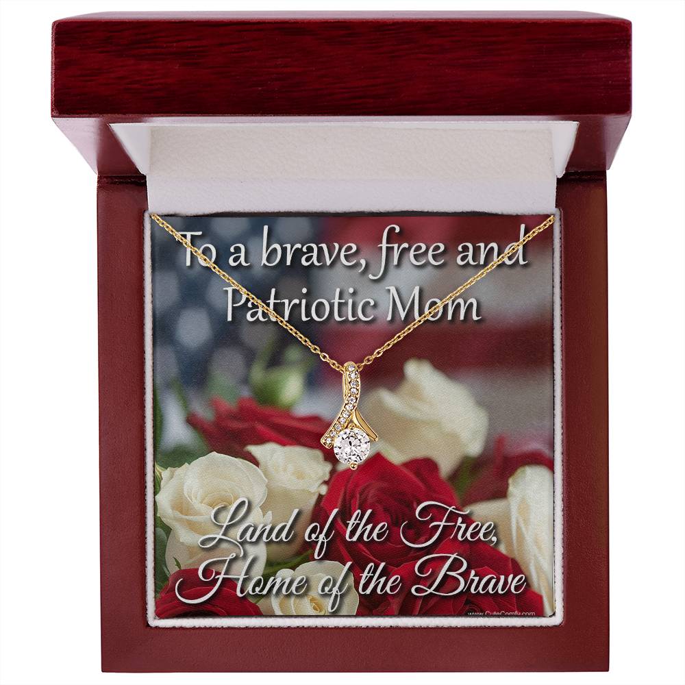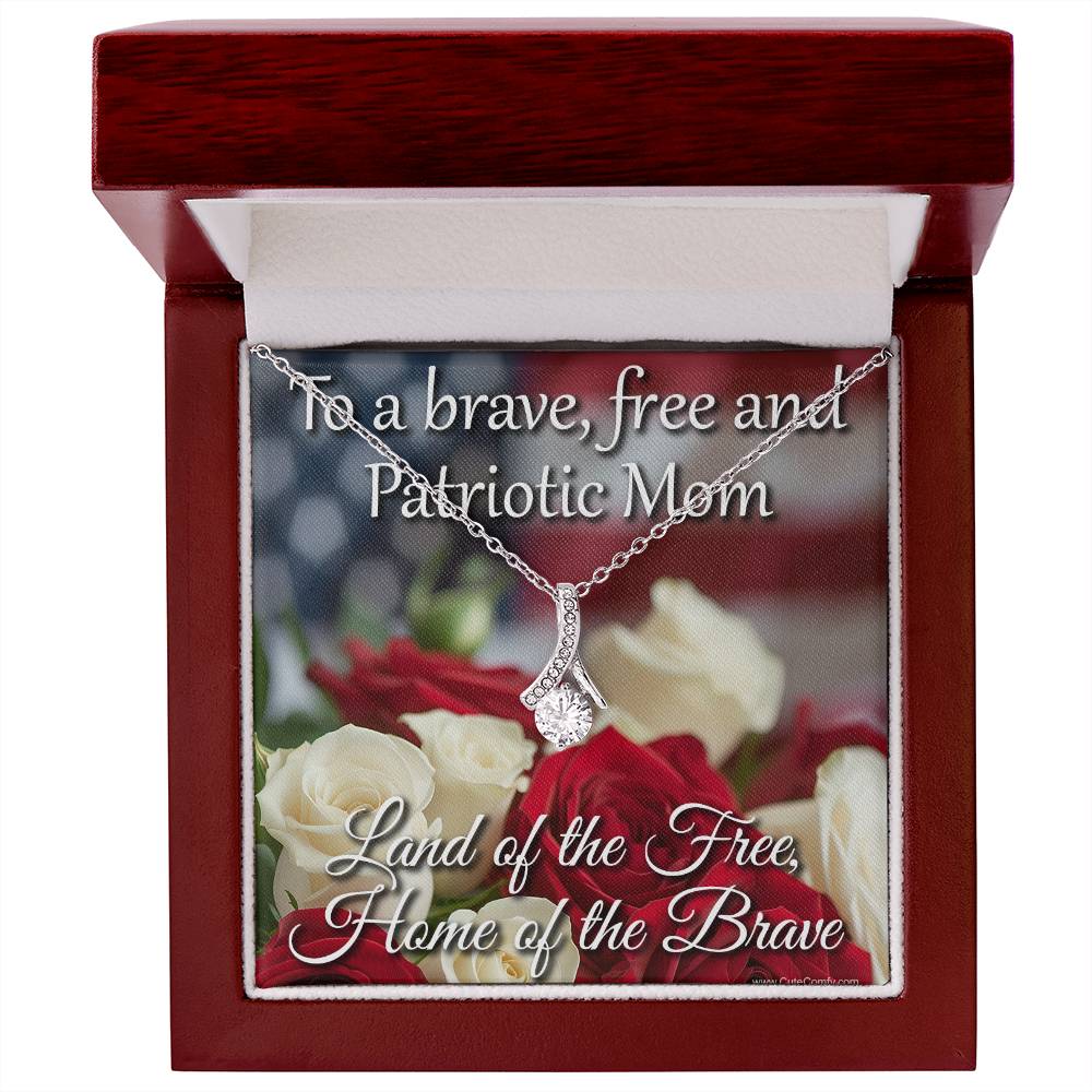 Patriotic Mothers Day Gift for Mom, Land of the Free Home of the Brave Necklace Gift